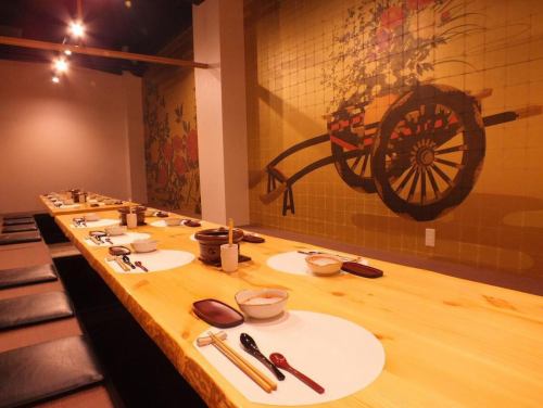 大人数でのご宴会に最適な堀ごたつ式の個室は、最大28名様まで対応可能です◎足元ゆったりの掘りごたつで、快適にくつろぎながらお食事を楽しめます。歓送迎会や会社宴会など各種宴会に大変お薦め♪人数や用途についてはお気軽にご相談ください。趣の異なる全20室の個室から、最適なお席をご用意いたします。